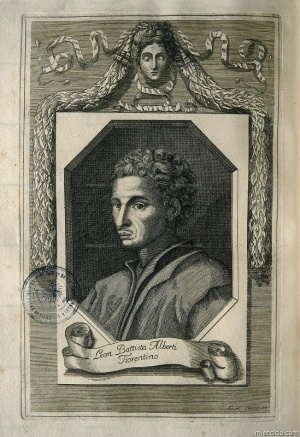 LEON BATTISTA ALBERTIRetrato de Leon Battista Alberti, grabado por Francesco Sesoni, publicado en una edición de sus _Tres libros de la Pintura_ y _Tratado de la Escultura_, realizada en Nápoles ...