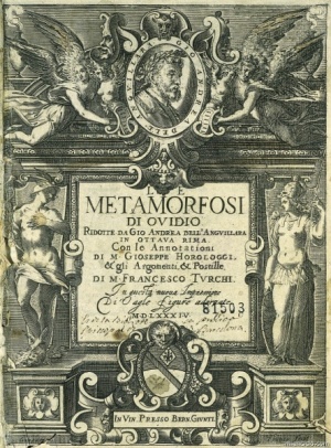 _Las Metamorfosis_. Edición realizada en Venecia en 1584. Frontispicio.(_Metamorphoseon libri_) Poema de madurez del escritor latino Publio Ovidio Nasón. Iniciado en torno al año 3 d. C., constituye ...