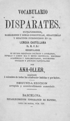 Vicio del lenguaje que consiste en pronunciar o escribir mal las palabras, o en emplear vocablos impropios. Uso impropio o innecesario de expresiones o palabras tomadas de otras lenguas._Vocabulario ...