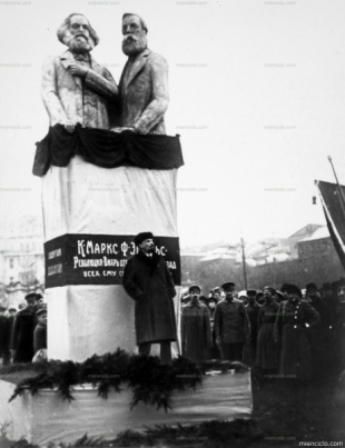Lenin en la inauguración del monumento dedicado a Karl Marx y Friedrich Engels en la plaza Voskresenskaya (Plaza de la Revolución) de Moscú (Rusia), en 1918.Nombre con el que a veces se designa la ...