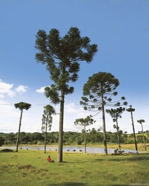 Araucaria de Paraná (_Araucaria angustifolia_), de la familia ARAUCARIÁCEASFamilia de árboles de gran porte y ramificación muy regular, del orden pinales, clase coníferas. Propios del hemisferio ...
