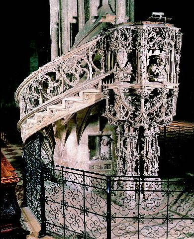púlpito n.m. Plataforma pequeña que hay en las iglesias para predicar desde ella. 2. Fig. En las órdenes religiosas, empleo de predicador.Púlpito de la catedral de San Esteban, en Viena.