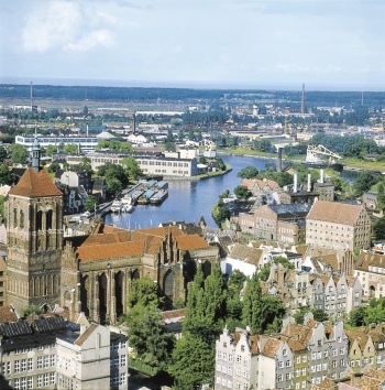 En idioma alemán, Danzig. Ciudad y puerto principal de Polonia, en la bahía de Gdansk. 262 km2. 462.249 habitantes (2015). Capital del voivodato de Pomerania —18.293 km2; 2.192.000 habitantes (2004)—, ...