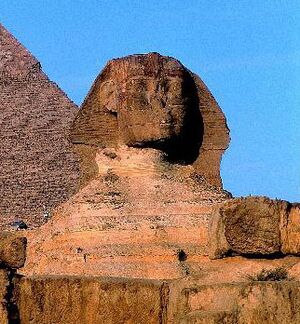 También denominada Gran Esfinge de Gizeh o Guiza. Escultura monumental del antiguo Egipto situada en la ciudad de Gizeh, a unos veinte kilómetros de la capital egipcia, El Cairo, junto a la ribera ...