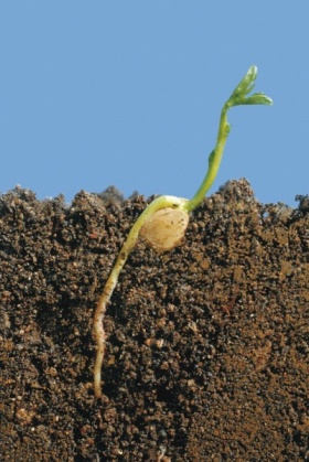 Germinación de una lenteja (_Lens culinaris_).(Del latín _germinatio, -onis_.) Paso de un cuerpo en estado latente a estado activo. Para que se produzca esta transformación han de darse dos ...