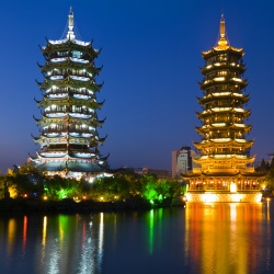 Pagodas junto al lago Banyan, en la ciudad de Guilin (Guangxi.)Región autónoma Zhuang de Guangxi. Región autónoma de China. 230 000 km2. 42 245 765 hab. Capital, Nanning. Situada en el S. del país, en ...