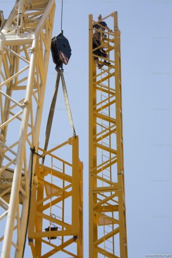 ... del complejo Dubai Marina, en Dubai (Emiratos Árabes Unidos).Máquina que sirve para levantar pesos y desplazarlos dentro de un radio de acción. Vehículo automóvil provisto de grúa para remolcar...