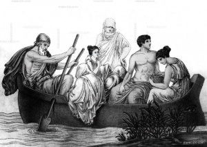 (Tasos, Tracia, Grecia antigua, h. 500 a.C. – Atenas, Grecia antigua, h. 440 a.C.). Pintor griego. POLIGNOTO DE TASOS_El barquero Caronte llevando a las almas al inframundo en su barca_. Ilustración ...