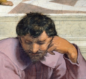 _La Escuela de Atenas_, obra de Rafael Sanzio. Detalle con Heráclito, filósofo PRESOCRÁTICO griego, representado bajo los rasgos de Miguel Ángel. Estancia de la Signatura, Ciudad del Vaticano.Se llama ...