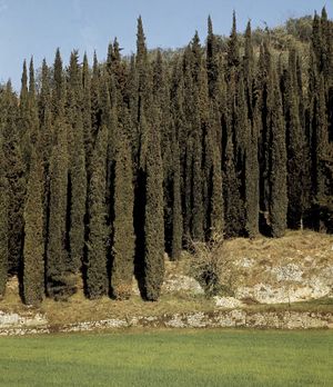 En idioma alemán, _zypresse_; en francés, _cyprès_; en inglés, _cypress_; en italiano, _cipresso_. Nombre común de varias especies de árboles del género _Cupressus_, familia de las cupresáceas.? ...