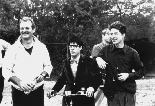 Los actores Bill Murray (a la derecha de la imagen) y Jason Schwartzman, junto al director Wes Anderson (a la izquierda), durante una pausa en el rodaje de la película _Academia Rushmore_, en 1998.( ...