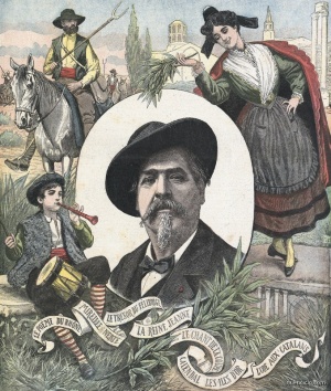 FRÉDÉRIC MISTRALRetrato del literato francés Frédéric Mistral rodeado de personajes populares de la Provenza. Homenaje con motivo del “Premio Nobel de Literatura” concedido a MISTRAL en 1904. ...