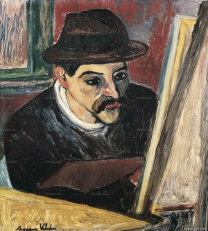 (París, Francia, 25-XII-1883 — Dax, departamento de las Landas, Francia, 5-XI-1955). Maurice Valadon. Pintor francés. MAURICE UTRILLO_Utrillo ante su caballete_. Óleo sobre lienzo de Suzanne Valadon ...