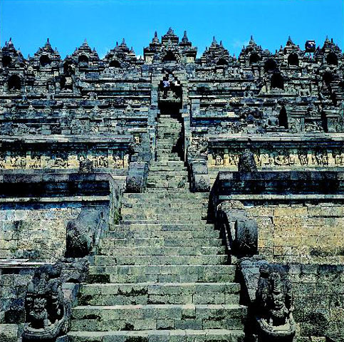 BARABUDUR o BOROBUDUR,monumento budista formado por un conjunto de terrazas, levantado en la isla de Java a mediados del s. VIII , obra maestra del arte indio-javanés. El complejo arquitectónico de ...