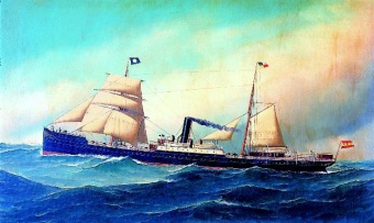 El buque transatlántico _Habana_. Museo Marítimo, Barcelona (España).Embarcación impulsada mediante el uso de vapor, como los barcos de poco calado propulsados por una rueda de paletas, muy usados ...