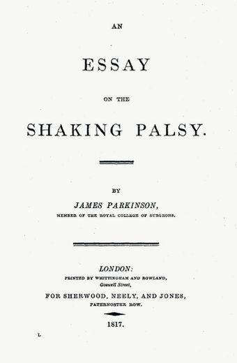 (Hoxton, Middlesex, Inglaterra, Reino Unido, 11-IV-1755 — Londres, Reino Unido, 21-XII-1824). Médico británico.Página de título (frontispicio) de la obra fundamental de James Parkinson en 1817, "An ...