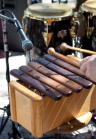 Xilófono.Instrumento de percusión consistente en un conjunto de barras de madera u otro material, graduadas y afinadas en las diferentes notas de la escala musical, que se apoyan sobre puntos ...