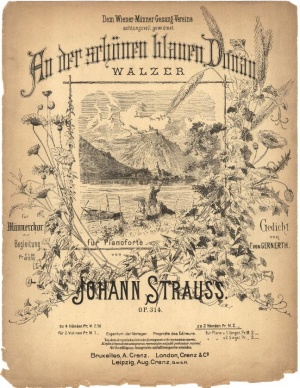 Portada de la partitura _El bello Danubio azul_, 1867.Vals compuesto por Johann Strauss en 1867 por encargo de la Sociedad Coral Masculina de Viena, institución fundada en 1843. Strauss recibió a ...