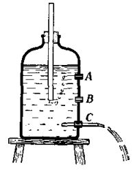 Esquema del FRASCO DE MARIOTTE. El agua sale del orificio uniformemente.Dispositivo inventado por el físico francés Edme Mariotte, con el que se obtiene un chorro de líquido a velocidad constante. ...