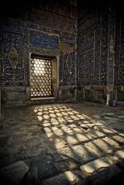 Interior de una madrasa de Registan, el centro histórico medieval de la ciudad de Samarcanda (Uzbekistán).Escuela de leyes y seminario teológico islámico contiguos a una mezquita. La madrasa ...