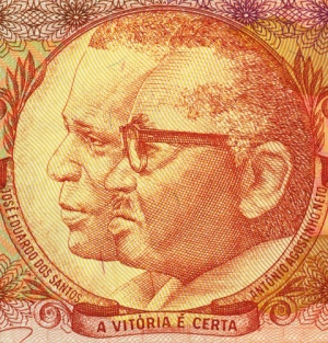 JOSÉ EDUARDO DOS SANTOS Billete de 500.000 kwanzas de curso legal, impreso h. 1991 en Angola, con la efigie de los dos presidentes que ha tenido el país tras su independencia: Agostinho Neto y Jose ...