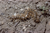 Escolopendra común (_Scolopendra cingulata_).(Del latín _scolopendra_, y éste del griego _skolopendra_.) Nombre común de distintas especies de artrópodos quilópodos del género _Scolopendra_, ...