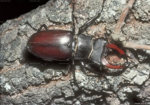 Ciervo volante (_Lucanus cervus_) de la familia Lucánidos. Macho de la especie, común en España.Familia de insectos coleópteros de tamaño mediano o grande.Los LUCÁNIDOS tienen las antenas acodadas, ...