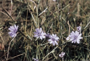 Voz mozárabe, del latín _cichoriam_. También llamada achicoria común, achicoria o endivia. Planta perenne de flores azules (_Cichorium intybus_) de la familia de las asteráceas, subfamilia de las ...