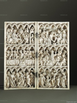 _Díptico de la Pasión_ (s. XIV). Escultura gótica en marfil procedente de Renania (Alemania), que se conserva en el Museo Arqueológico Nacional de Madrid (España). Escenas del Nuevo Testamento (de ...