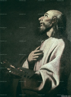 LUCAS EL EVANGELISTA_San LUCAS como pintor ante Cristo en la Cruz_. Óleo sobre lienzo (1638) de Francisco de Zurbarán (posible autorretrato del pintor). EVANGELISTA Y PINTOR DE LA LA SANTÍSIMA ...
