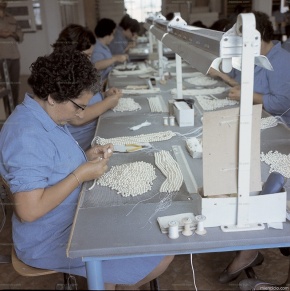 Fabricación de collares de perlas. Manacor, isla de Mallorca (islas Baleares, España).Excrecencia o concreción de carbonato cálcico segregada por algunas ostras cuando se introducen en ellas cuerpos ...