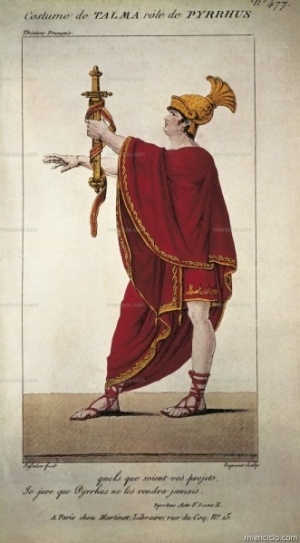 El actor François Joseph Talma en el papel de Pyrrhus de la obra _Andrómaca_ de Jean Racine (escena II del acto V).(_Andromaque_) Tragedia en cinco actos del dramaturgo francés Jean Racine, escrita ...