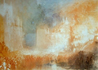 En alemán, _aquarell_; en francés, _aquarelle_; en inglés, _water colour_; en italiano, _acquerello_. Técnica de pintura a base de mezcla de pigmentos con colas diluidas.ACUARELA del _Incendio de ...