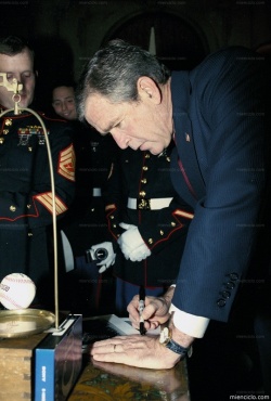 El presidente estadounidense George W. Bush en la Cumbre de Estudios Atlánticos de Praga (PASS) del año 2002.En inglés, _Anti-Ballistic Missiles_ (ABM). También denominado Defensa Nacional de Misiles ...