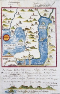 Plano del arzobispado de México (1767), obra de José Antonio Alzate, en el que aparecen la zona de Tenochtitlán, las lagunas de Chalco y de Texcoco (_Tescuco_). Procedente de la Colección Lorenzana- ...