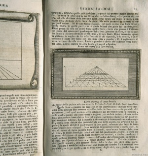 Estudio de perspectiva, perteneciente al Libro primero de _Tres libros de la Pintura_ de Leon Battista Alberti. Edición realizada en Nápoles por Francesco Ricciardo y Vincenzo y Nicola Rispoli (1733 ...