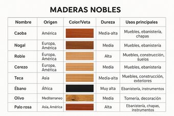 Nombre que reciben aquellas maderas naturales, procedentes de árboles de crecimiento lento, que destacan por su gran resistencia, durabilidad, belleza en el veteado y uniformidad de color. También se ...