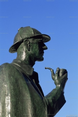 Estatua de Sherlock Holmes frente a la parada de metro de Baker Street.Personaje literario creado por el escritor escocés Arthur Conan Doyle, como protagonista de una saga de 56 narraciones y cuatro ...