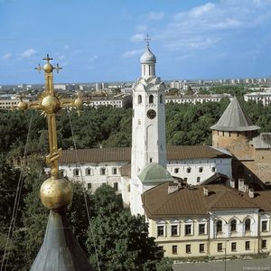 NÓVGOROD Vista panorámica de la ciudad de Nóvgorod, con el _kremlin_ y la torre del reloj (construida en 1443 y restaurada en el año 1673.) País Rusia • Región económica Noroeste ...