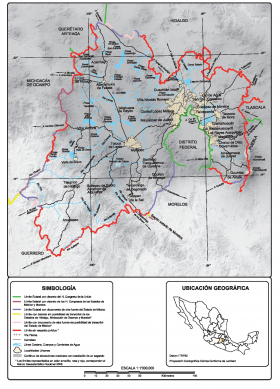 Estado de México, situado en el centro del país, que se extiende entre los 22º 45 y los 18º 55 de latitud norte, y los 101º 28 y 105º 42 de longitud oeste. 22.499,95 km2 (el 1,09 % de la superficie ...