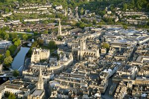 Ciudad del Reino Unido, al sudoeste de Inglaterra, en el condado de Somerset. 132 m de altitud. 94.092 habitantes (2021). Gentilicio: batonianos..fot300 imgBath& 160;Vista panorámica aérea sobre el ...