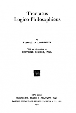TRACTATUS LOGICO-PHILOSOPHICUS Página de título de la primera edición inglesa de 1922 Autor Ludwig Wittgenstein Género Ensayo Tema(s) Filosofía analítica Idioma Alemán País Austria ...