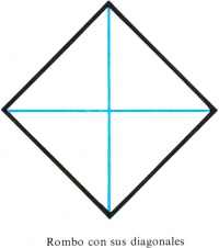 Rombo n.m. GEOM Paralelogramo que tiene los lados iguales y dos de sus ángulos mayores que los otros dos.ÁREALas dos diagonales de un rombo lo dividen en cuatro triángulos iguales:El área del rombo ...