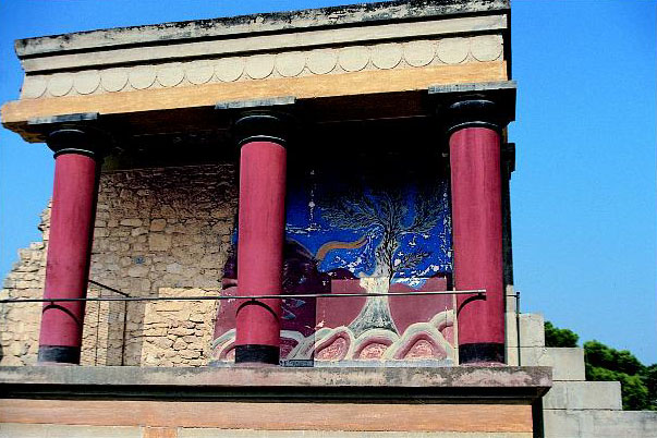 Ciudad minoica situada al N. de la isla de Creta, en la llanura de Kairatos, cerca de Herakleion (act. Iráklion), excavada por A. Evans (1899-1935). Su edificio más importante es el palacio real, ...