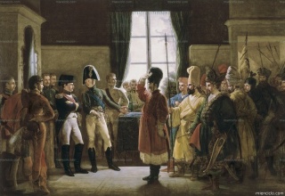 Tratados de Tilsit: _Alejandro I presenta a Napoleón los kalmukos, cosacos y bashkirios del ejército ruso (9 de julio de 1807)_. Óleo sobre lienzo de Pierre Nolasque Bergeret (1782-1863). Museo ...
